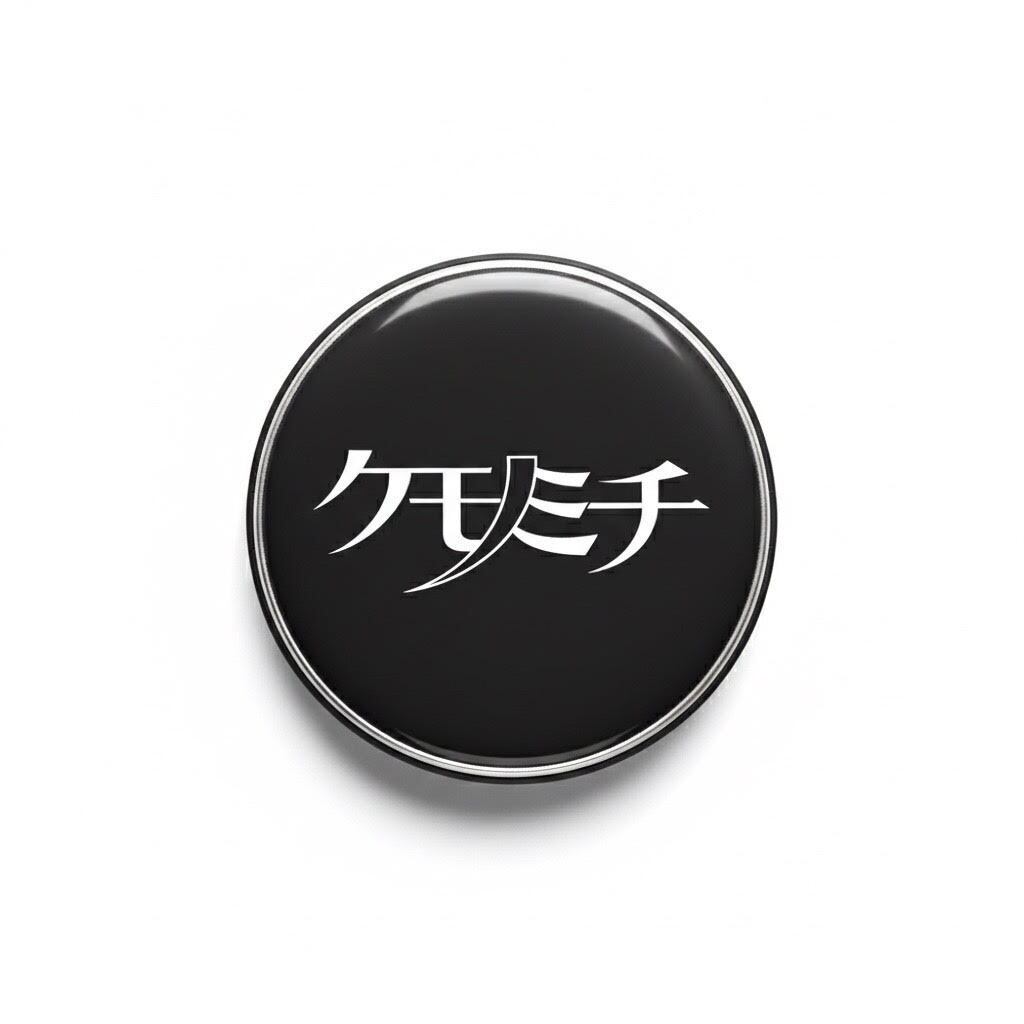 赤または黒の缶バッジ。